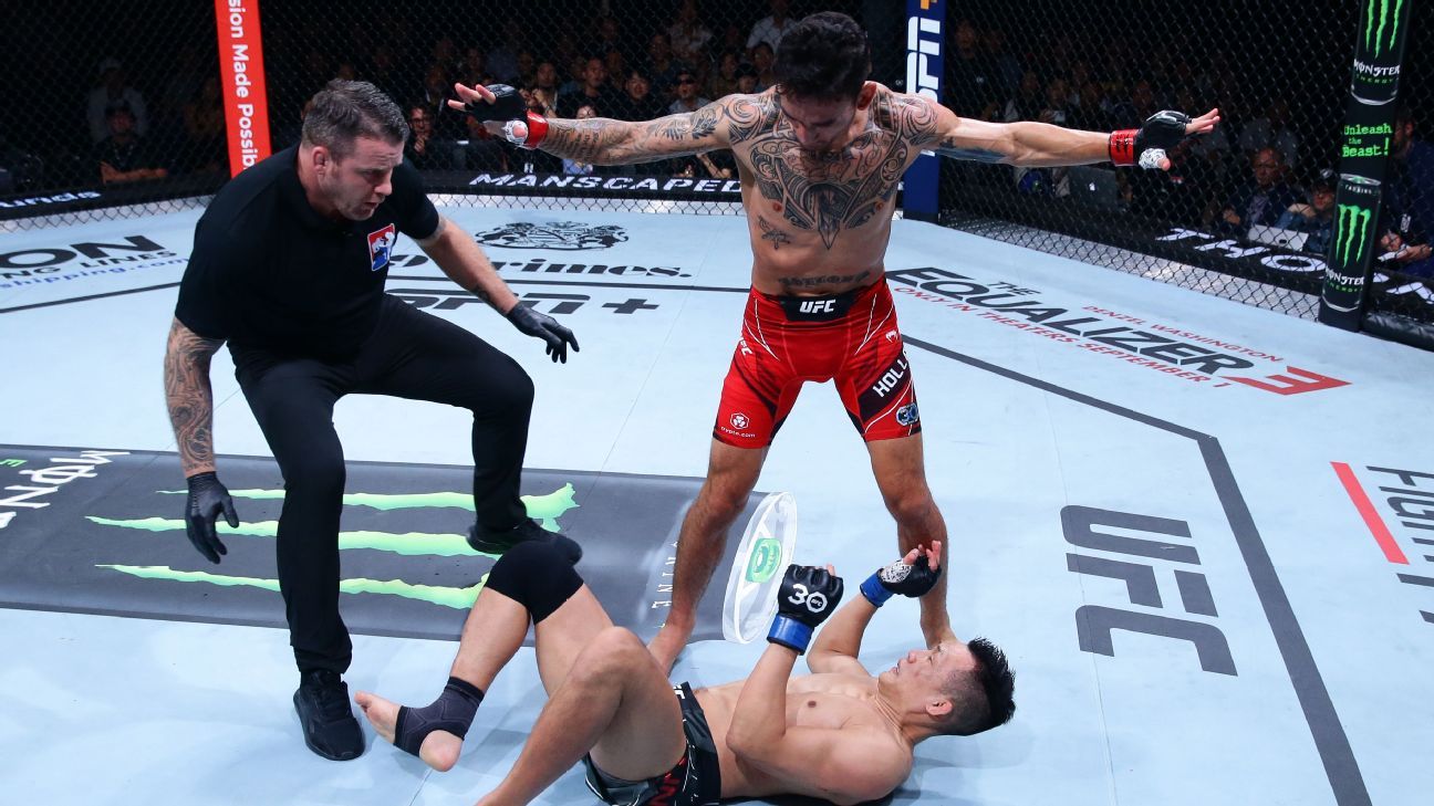 A vitória aumentou ainda mais o domínio de Holloway no livro dos recordes dos penas do UFC. Ele ocupa o primeiro lugar na história da categoria em lutas (26), vitórias (20), finalizações (11) e nocautes (9). Mas desta vez, Jung (17-8), que anunciou sua aposentadoria das artes marciais mistas aos 36 anos, pode ter sido a grande história.