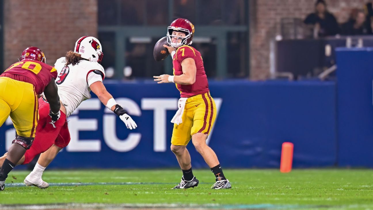 Com Caleb Williams assistindo da linha lateral, Miller Moss lançou um recorde do Holiday Bowl de seis passes para touchdown em seu primeiro início colegial e o USC encerrou uma campanha decepcionante com uma vitória por 42-28 sobre o número 16 de Louisville na noite de quarta-feira. Depois, o técnico dos Trojans, Lincoln Riley, derramou gemada em sua cabeça.