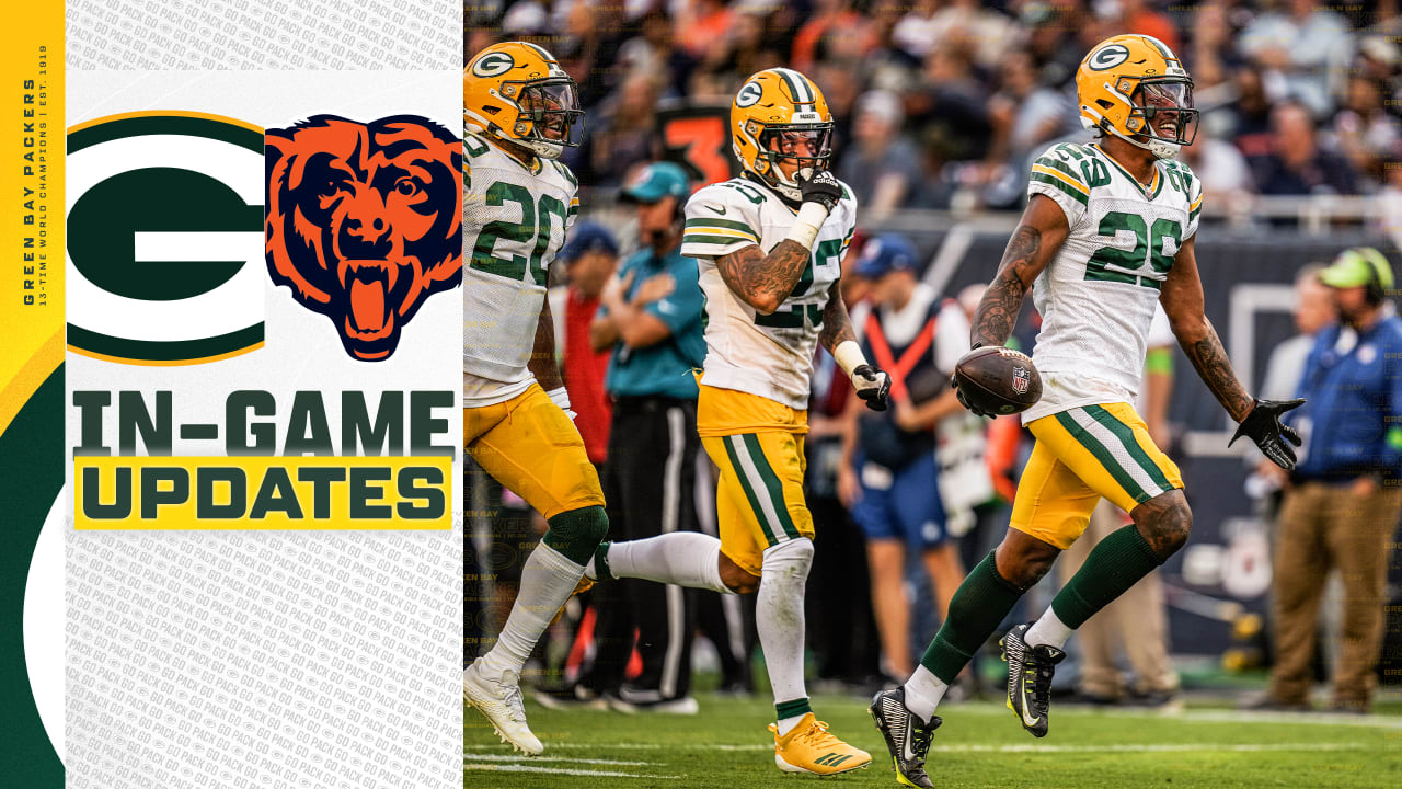 A defesa dos Packers manteve o Chicago fora da end zone, no entanto, e depois que o novato Lucas Van Ness registrou seu primeiro sack na carreira com uma derrota de sete, Rasul Douglas quebrou um passe de terceira descida para Kmet na end zone. .